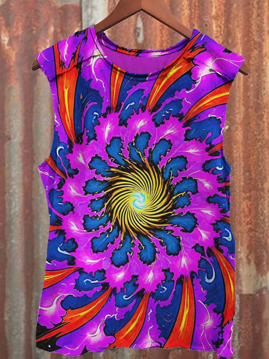 Abstract Swirl Print Casual Tank Top