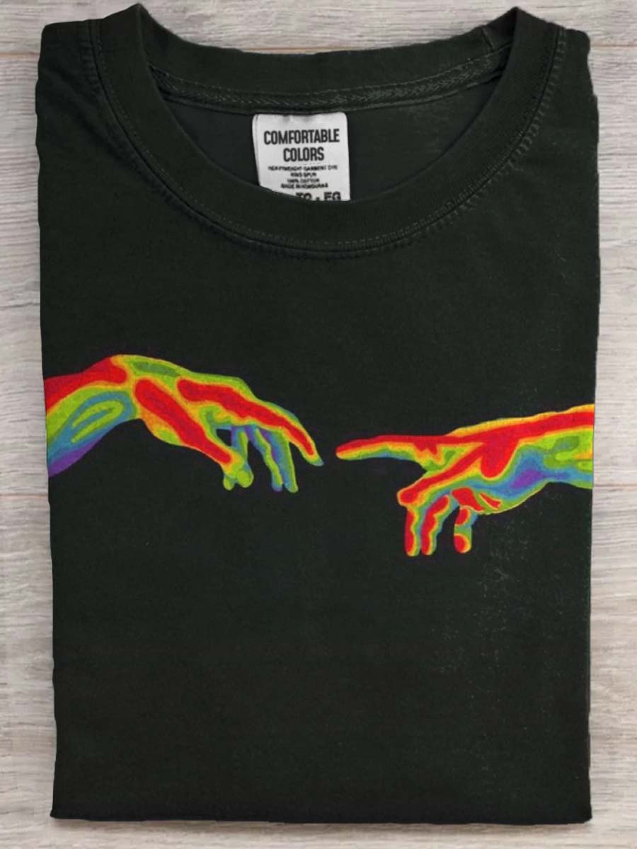Abstract Thermal Imaging Hand Printed Casual Short Sleeve T-Shirt