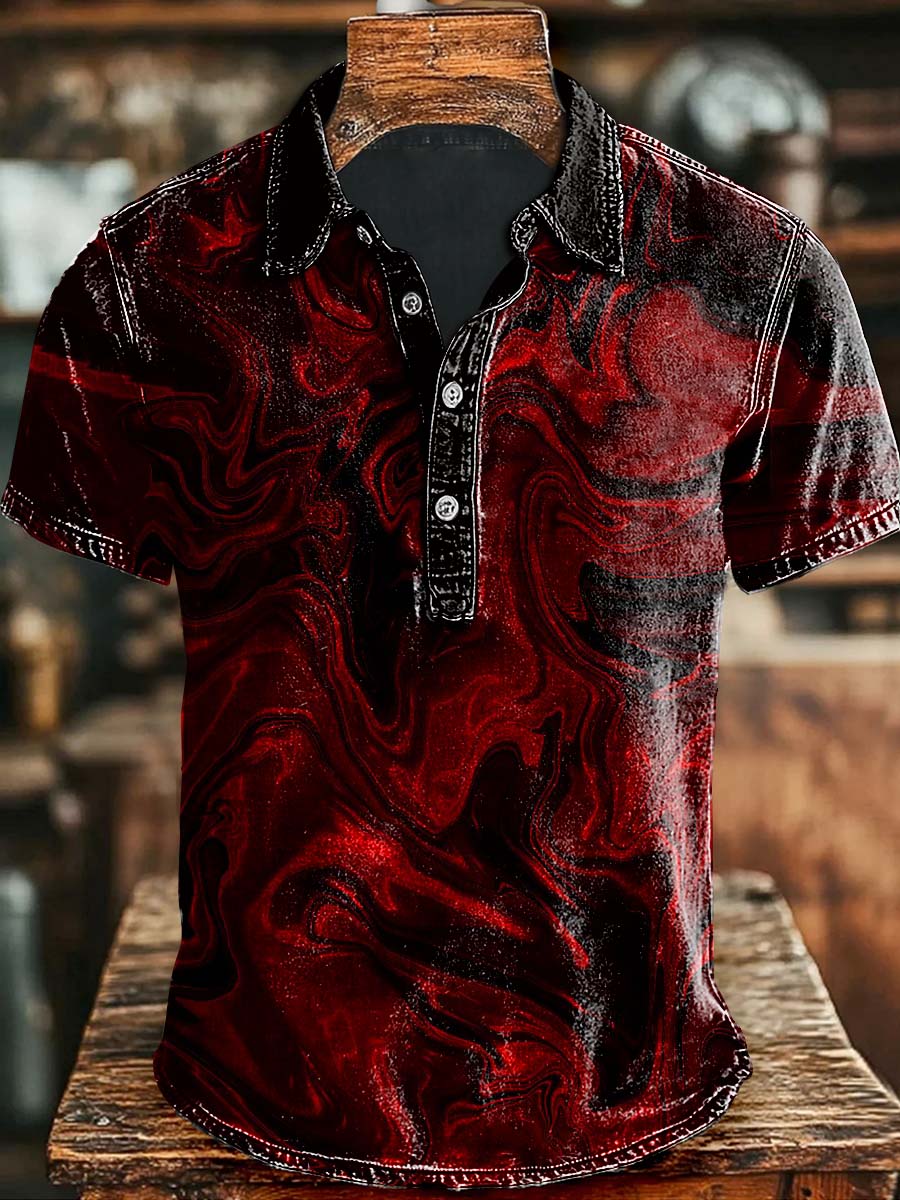 Artistic abstract rendering print casual polo shirt