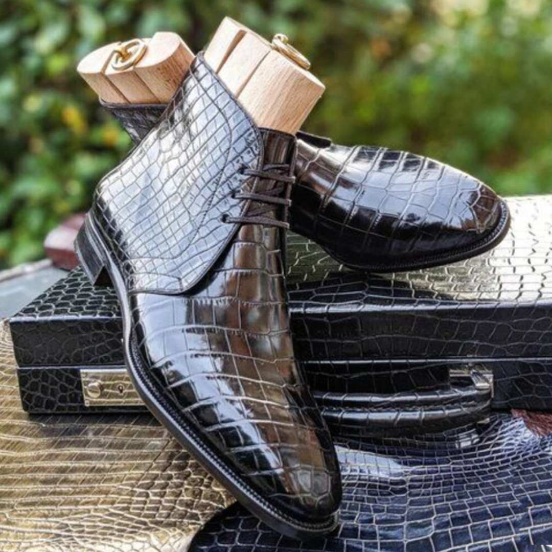 Black Stylish Crocodile Pattern Chukka Leather Boots