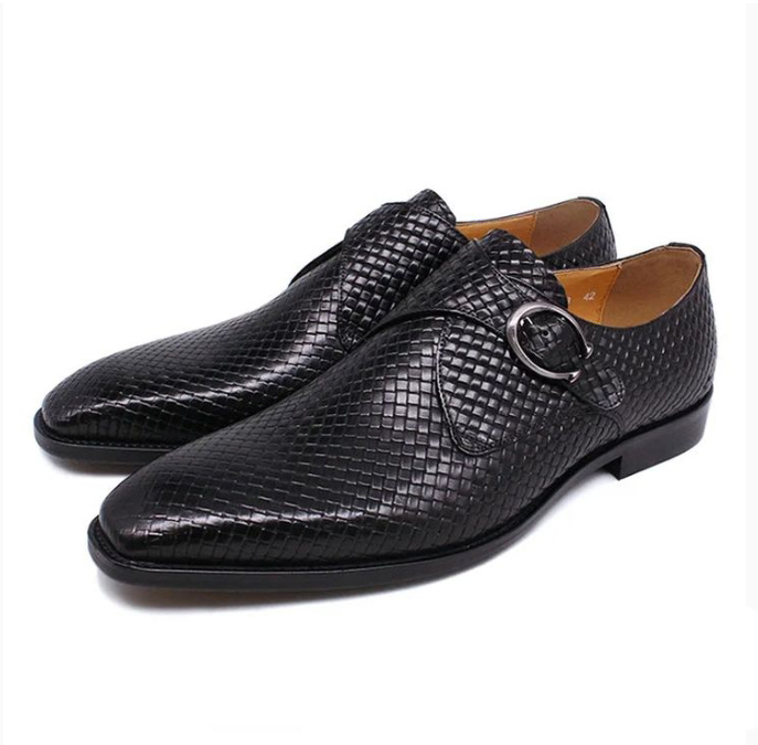 Classic Monk Strap Buckle Genuine Leather Luxury Plaid Formal Shoes for Men