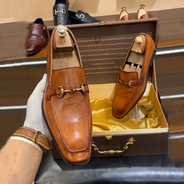 Classic tan loafers in genuine leather