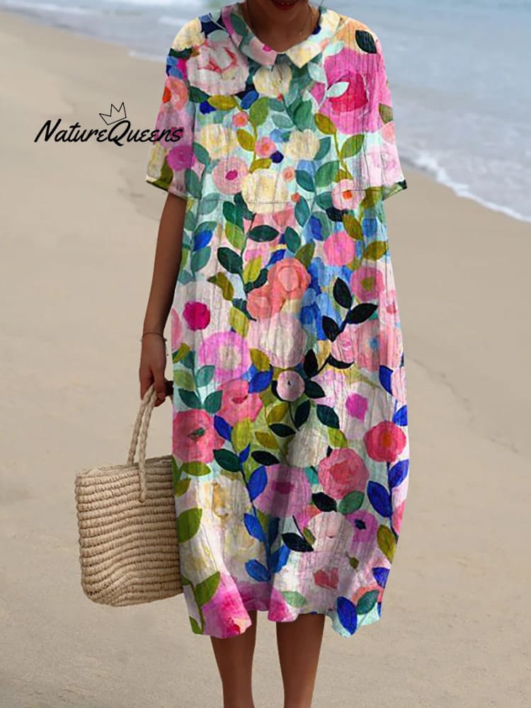 Colorful Spring Floral Garden Printed Women's Pocket Linen Dress (Convertible Dress With Front And Back Option)