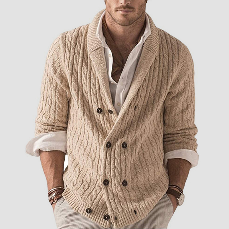 Daily Shawl Collar Double Breasted Solid Braid Knit Long Sleeve Cardigan