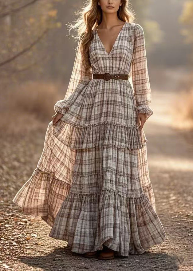DIY Apricot Cinched Plaid Exra Large Hem Ankle Dress Spring
