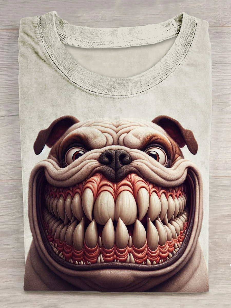 Dog Printed Vintage Fashion Loose Short Sleeve T-Shirt