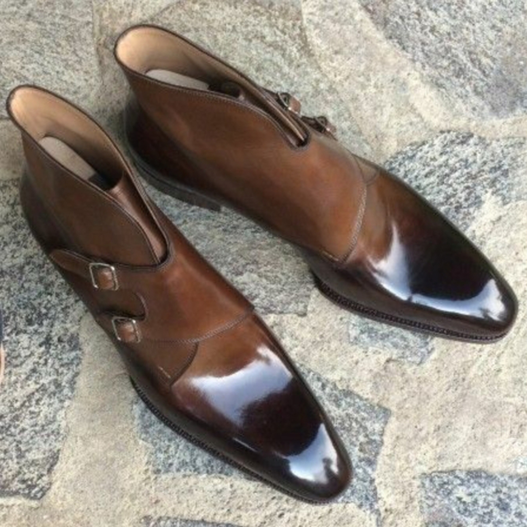 Double-buckle monk lace men's ankle boots