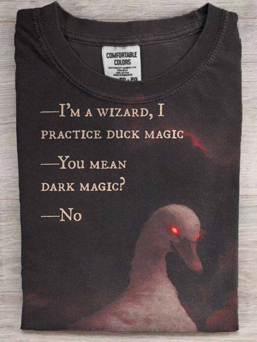 Duck Wizard Print Casual Short Sleeve T-Shirt
