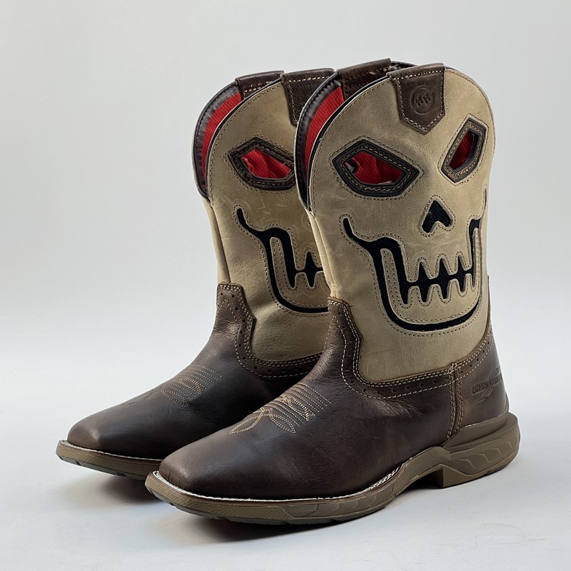 Embroidered Men's Boots Skull Pattern Outdoor Motorcycle Leather Western Riding Boots