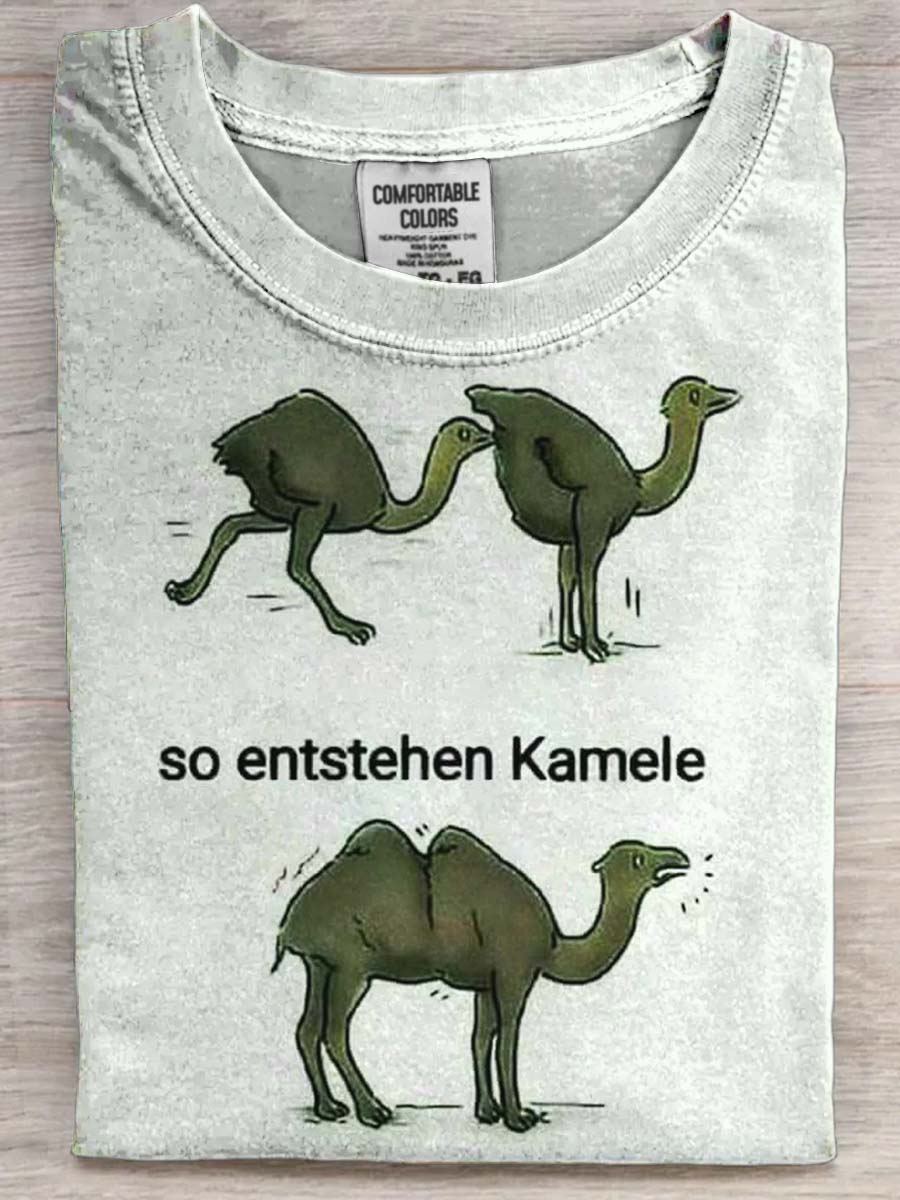 Funny Camel's Birth Printed Casual Short Sleeve T-Shirt