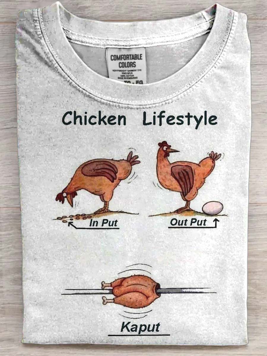 Funny Chicken Print Casual Short Sleeve T-Shirt