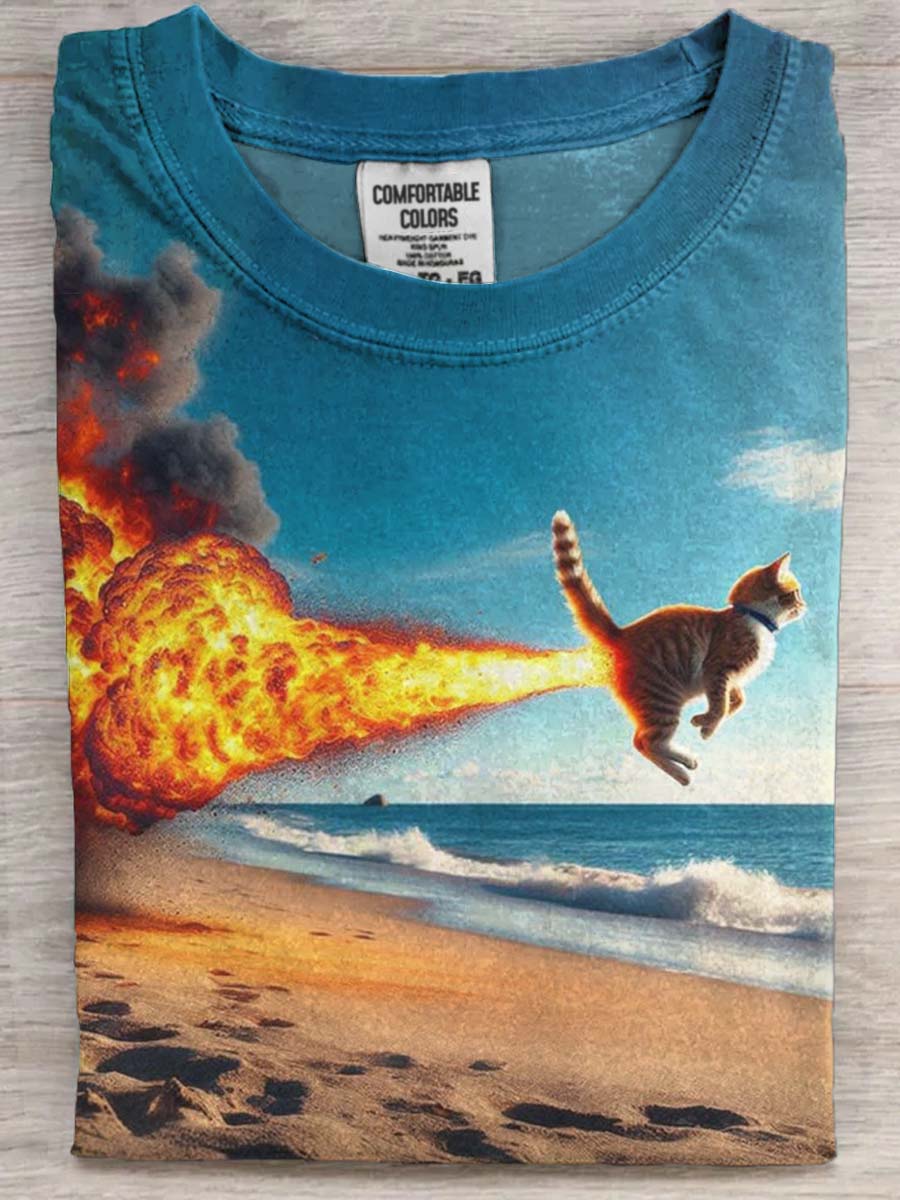 Funny Farting Cat Printed Casual Short Sleeve T-Shirt