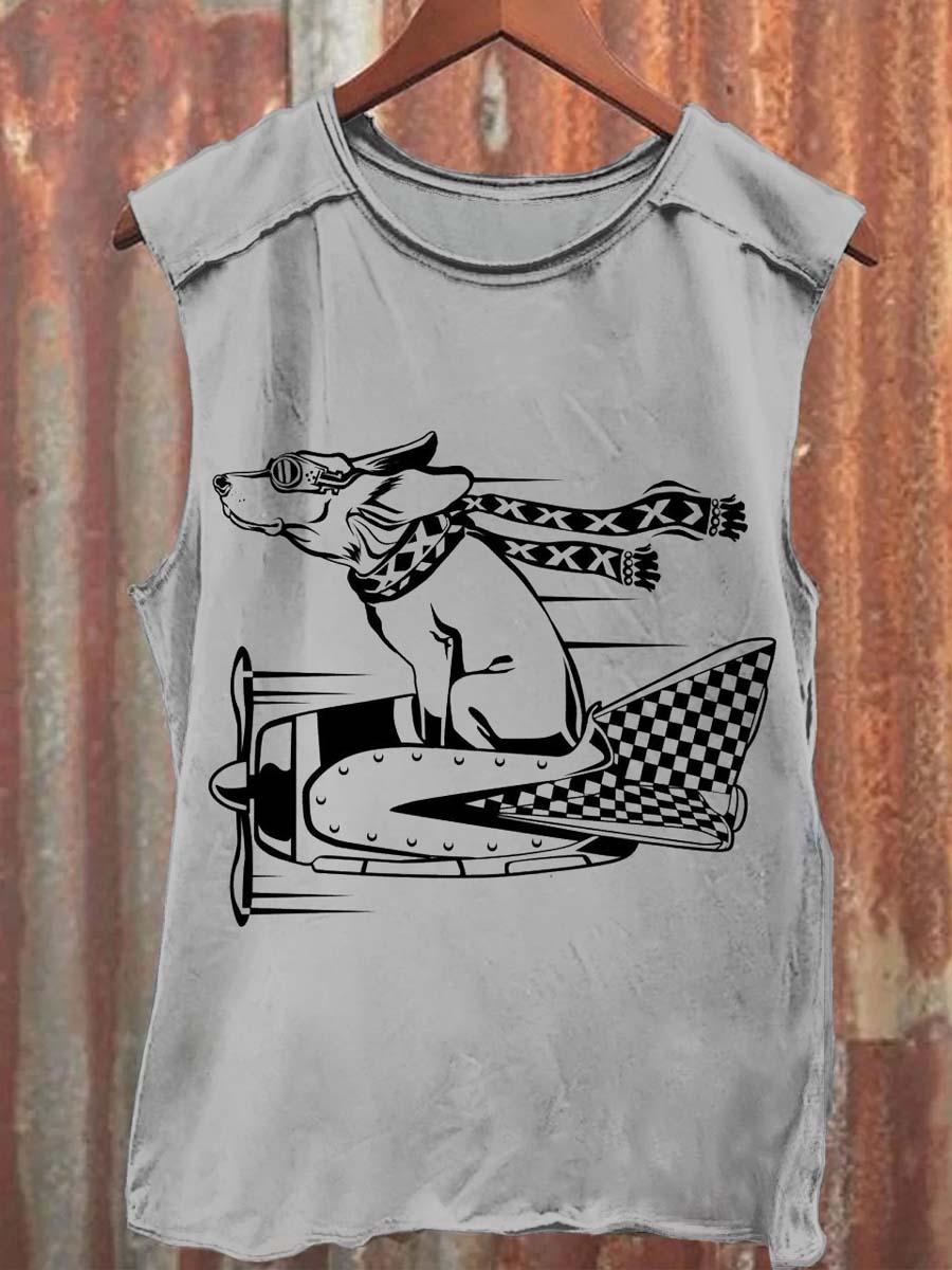 Funny Puppy Pilot Print Casual Tank Top