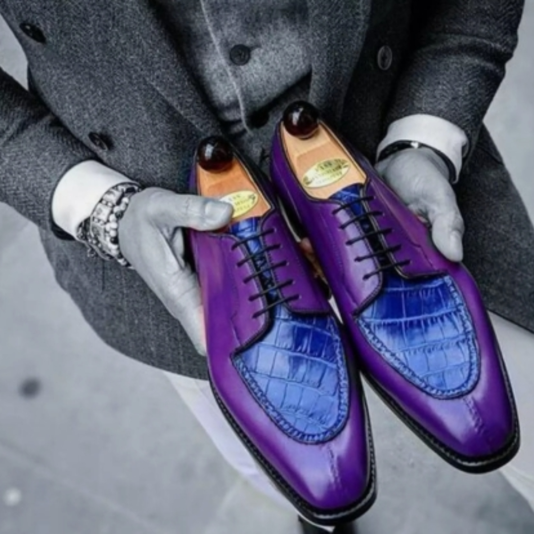 Genuine handmade combination leather shoes, loafers with laces for men formal dress shoes