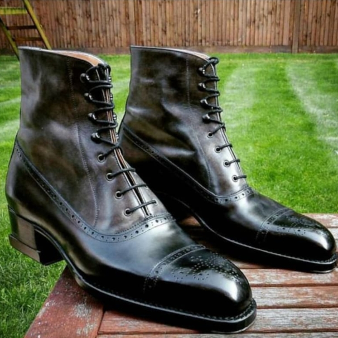 Handmade genuine leather black men's ankle high boots black calfskin boots
