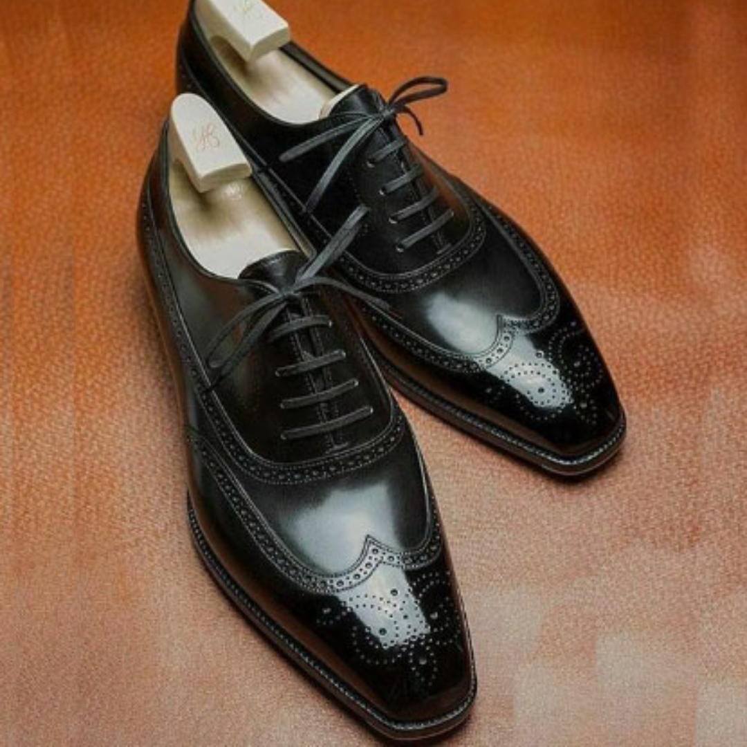 Handmade Men's Black Leather Wingtip Brogues, Formal Dress Shoes