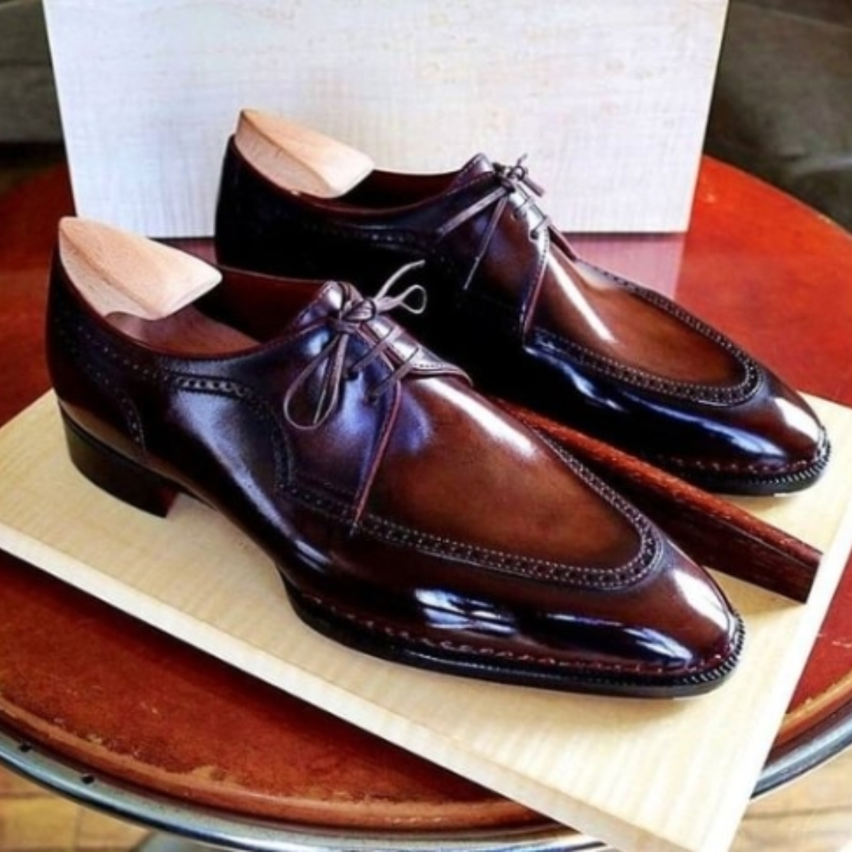 Italian Handmade Brown Patent Leather Dress Shoes for Men Oxford Shoes, Brogue Shoes