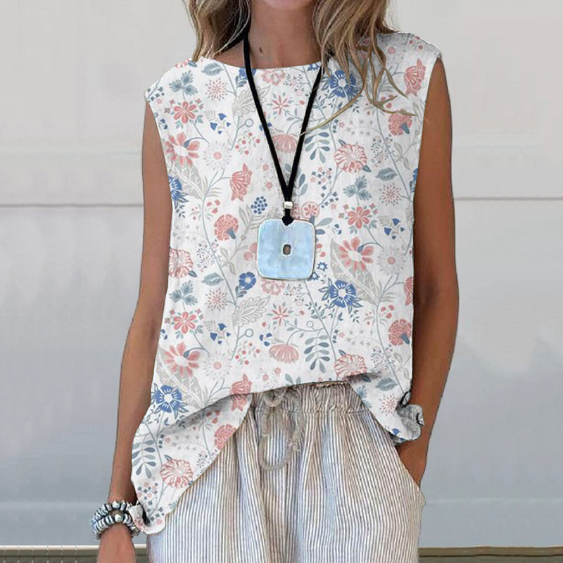 Women's Pastoral Floral Art Print Casual Cotton Linen Tank Top