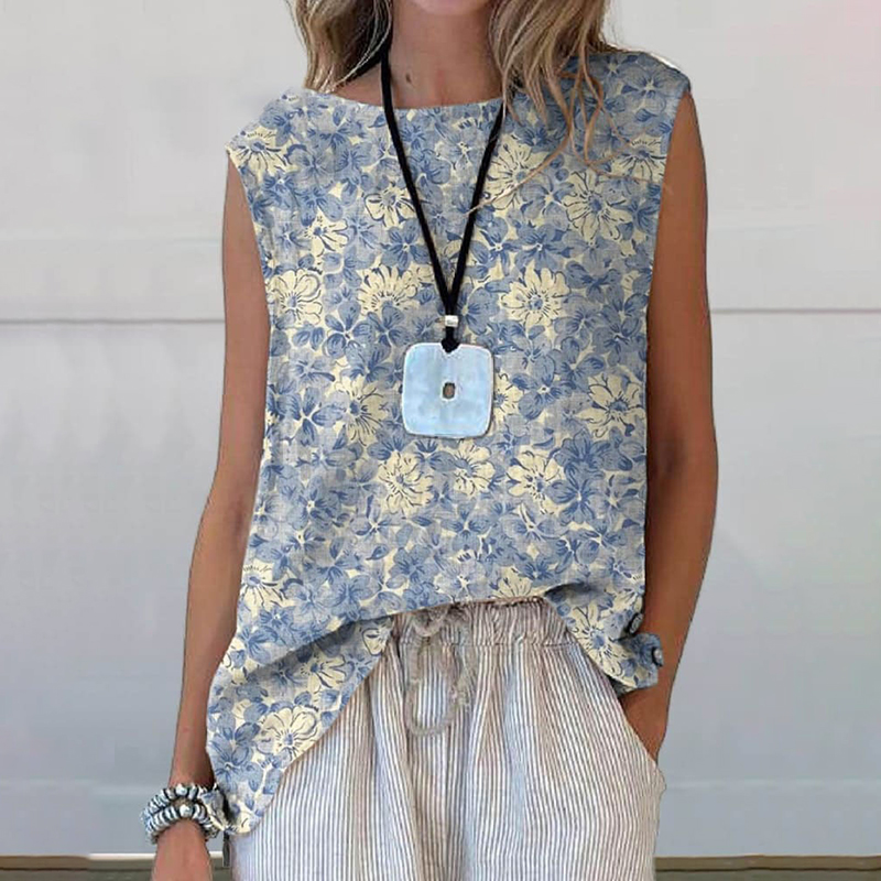 Women's Retro Elegant Floral Art Print Casual Cotton And Linen Tank Top