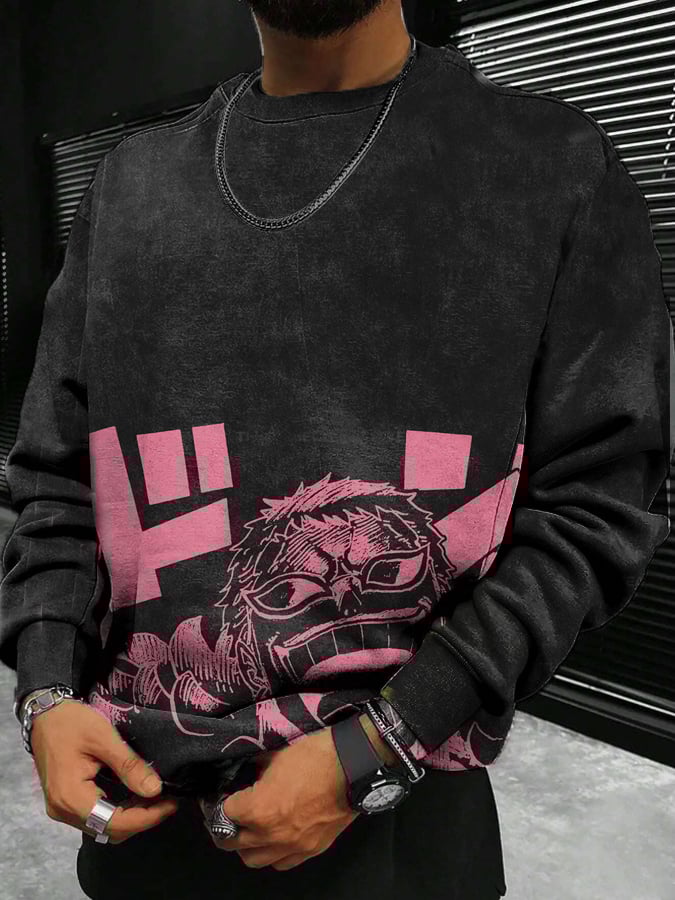 I Piece☠️ fashionable anime print crew neck sweatshirt