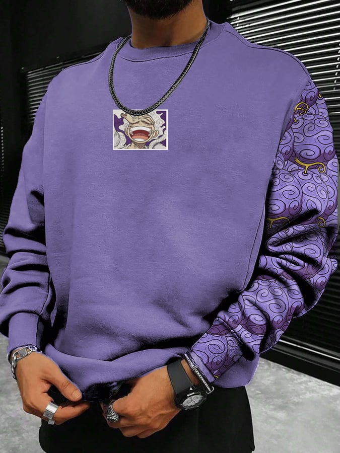 I Piece☠️ fashionable anime print crew neck sweatshirt