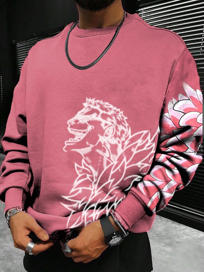 I Piece☠️ fashionable anime print crew neck sweatshirt
