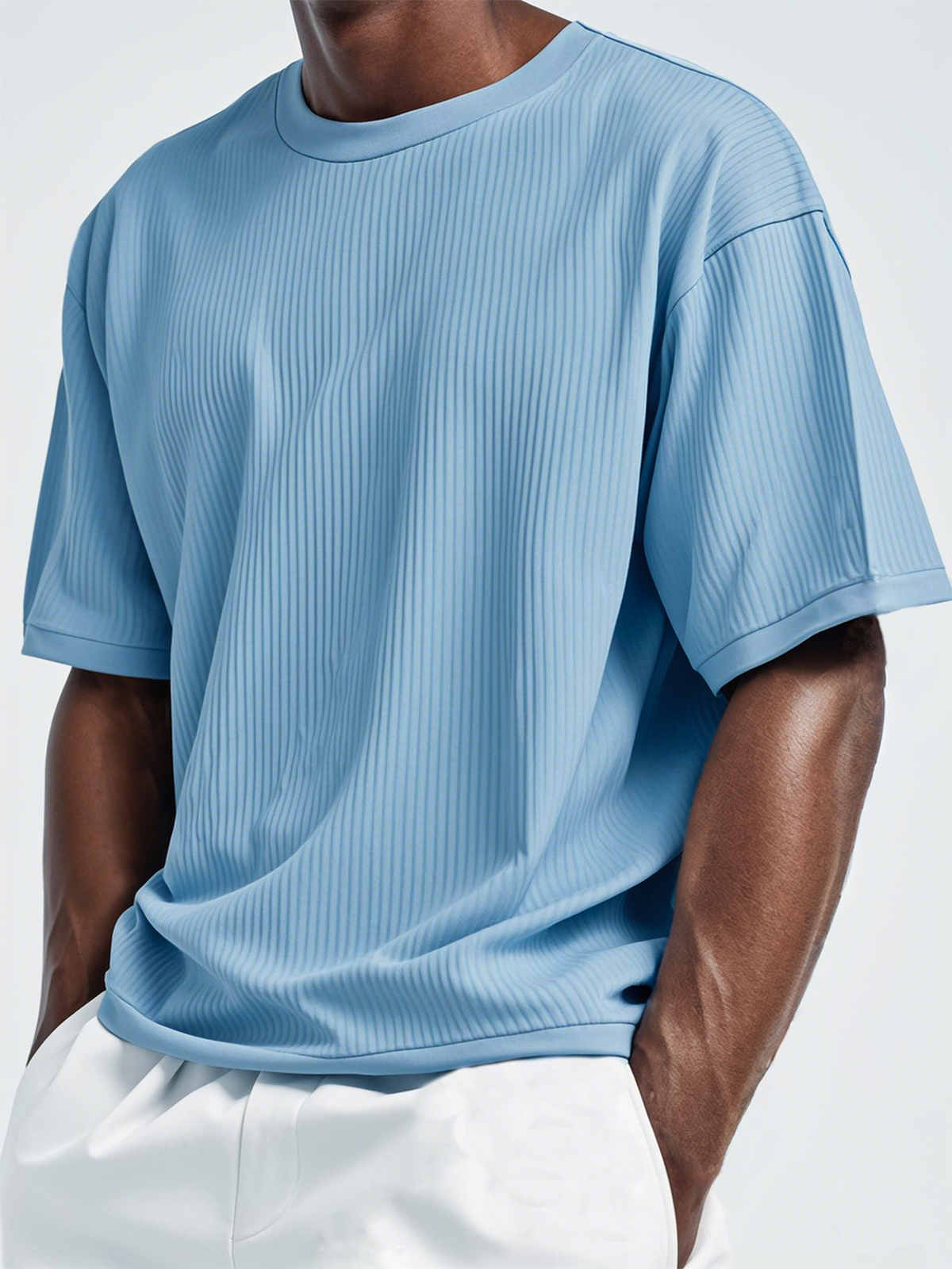 Men's Pleated Vertical Striped Fabric Casual Short Sleeve T-shirt