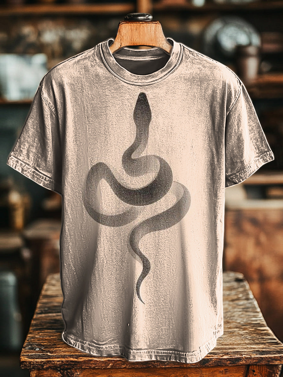 Men's Retro Abstract Snake Print Casual Short Sleeve T-Shirt