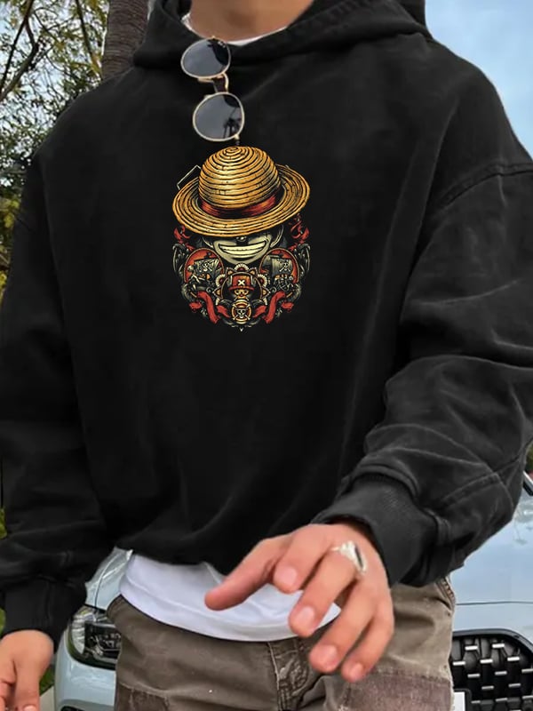 I Piece☠️ Retro Anime Graphic Pocket Hoodie