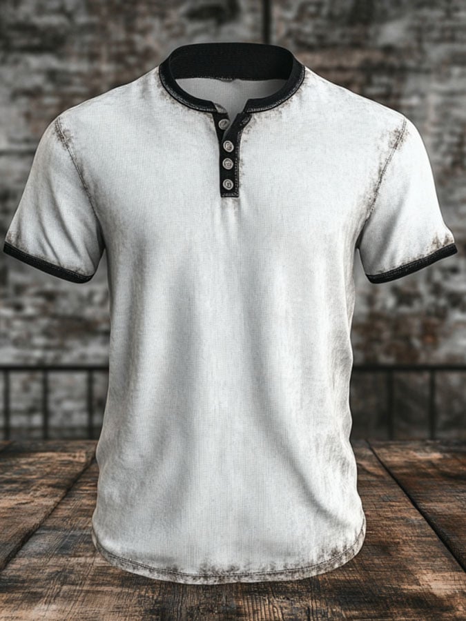 Men's Retro Casual Button Collar Short Sleeve T-Shirt