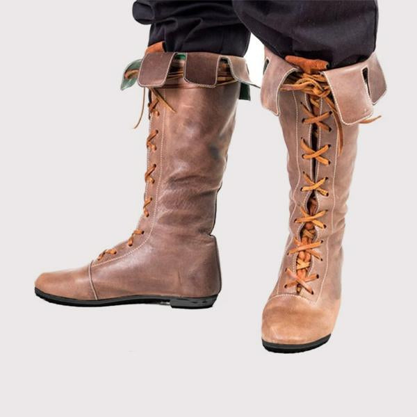 MEN'S RETRO MEDIEVAL LACE-UP CUFFED BOOTS 45332290S
