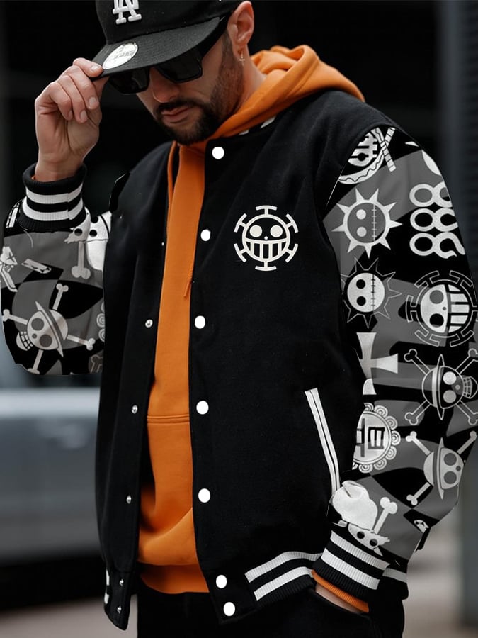 I Piece☠️ Stylish Comic Print Baseball Jacket
