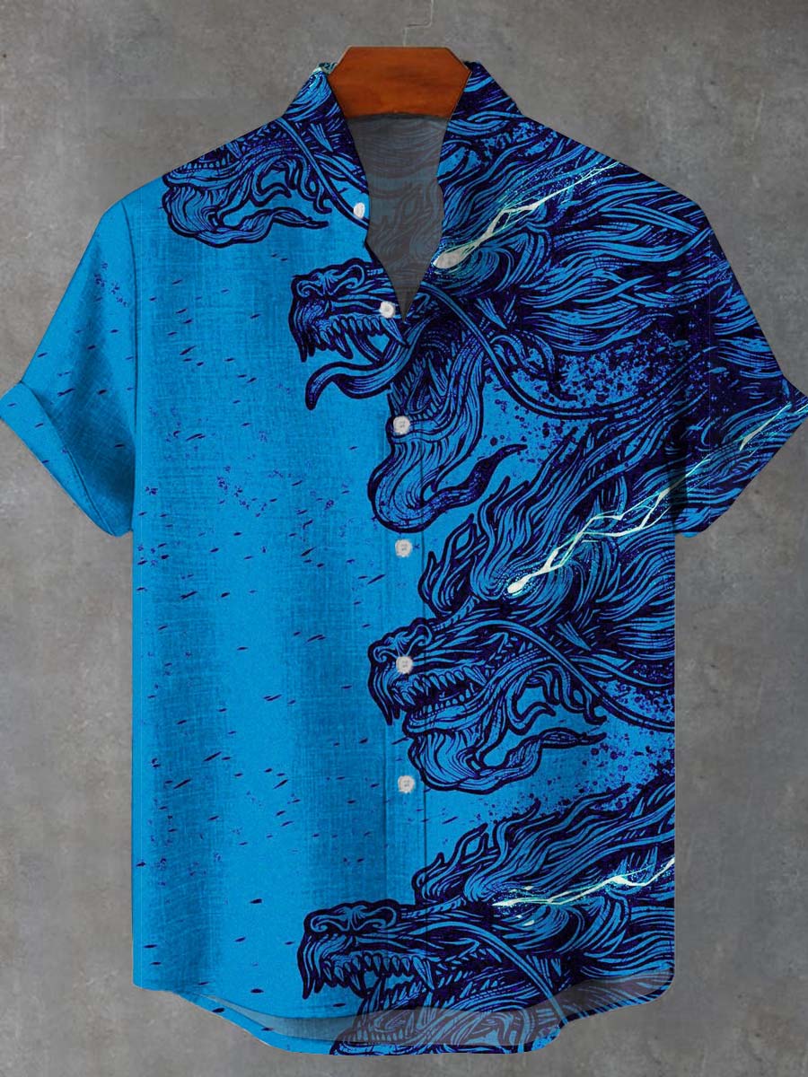 Men's Vintage Dragon Print Casual Short Sleeve Shirt