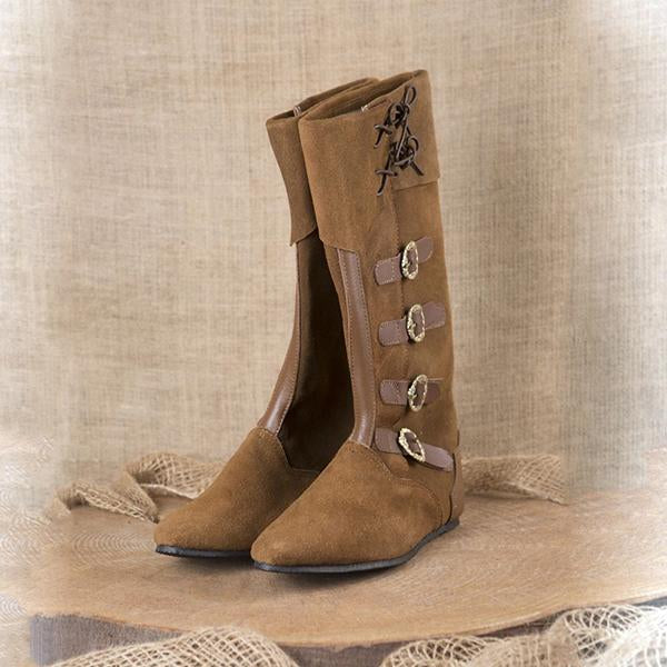 MEN'S VINTAGE MEDIEVAL BELT BUCKLE KNEE-HIGH BOOTS 02395535S