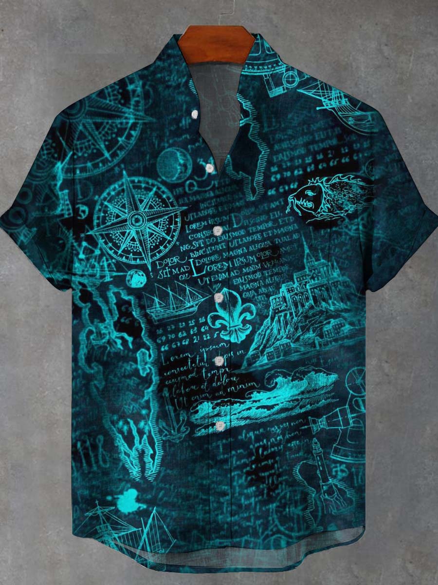 Men's Vintage Nautical Print Casual Short Sleeve Shirt