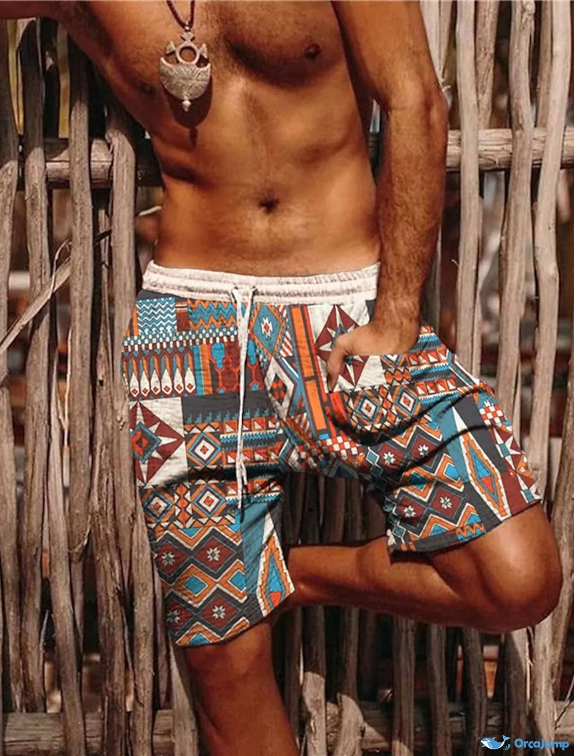Men's Western Ethnic Printed Elastic Waist Beach Shorts
