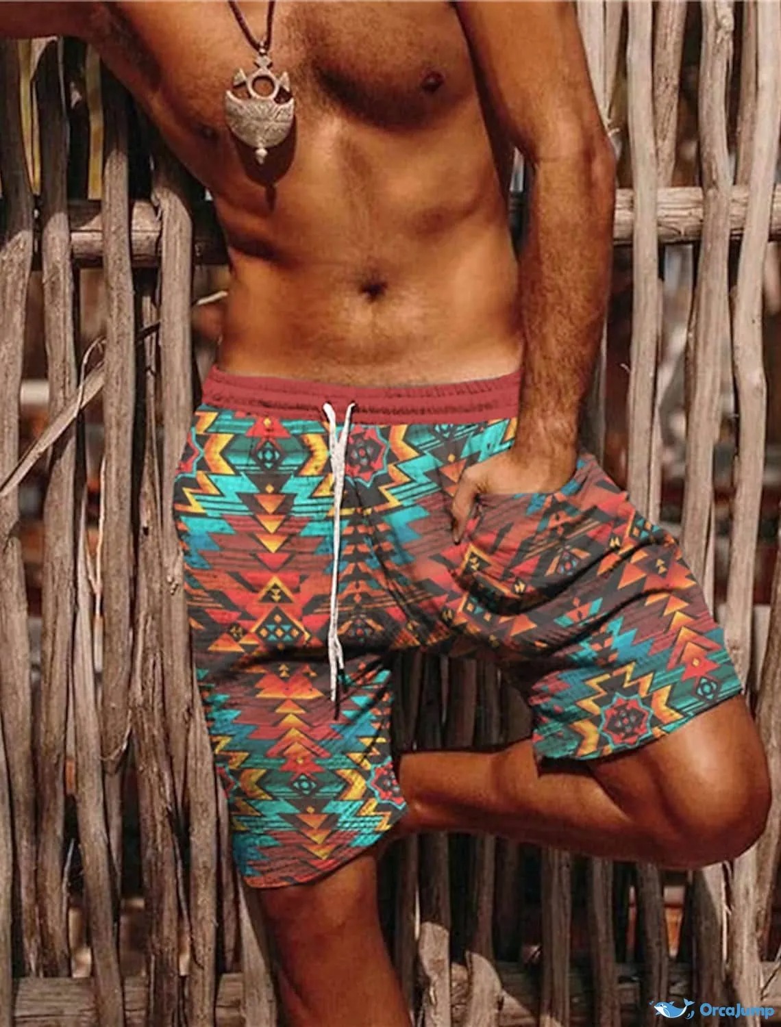 Men's Western Printed Elastic Waist Beach Shorts