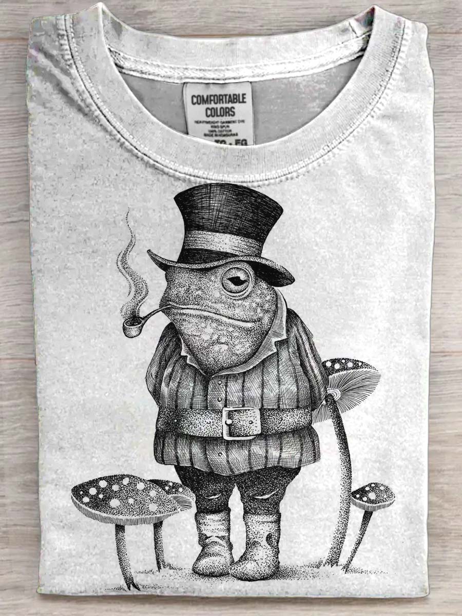 Mushroom Frog Print Casual Short Sleeve T-Shirt