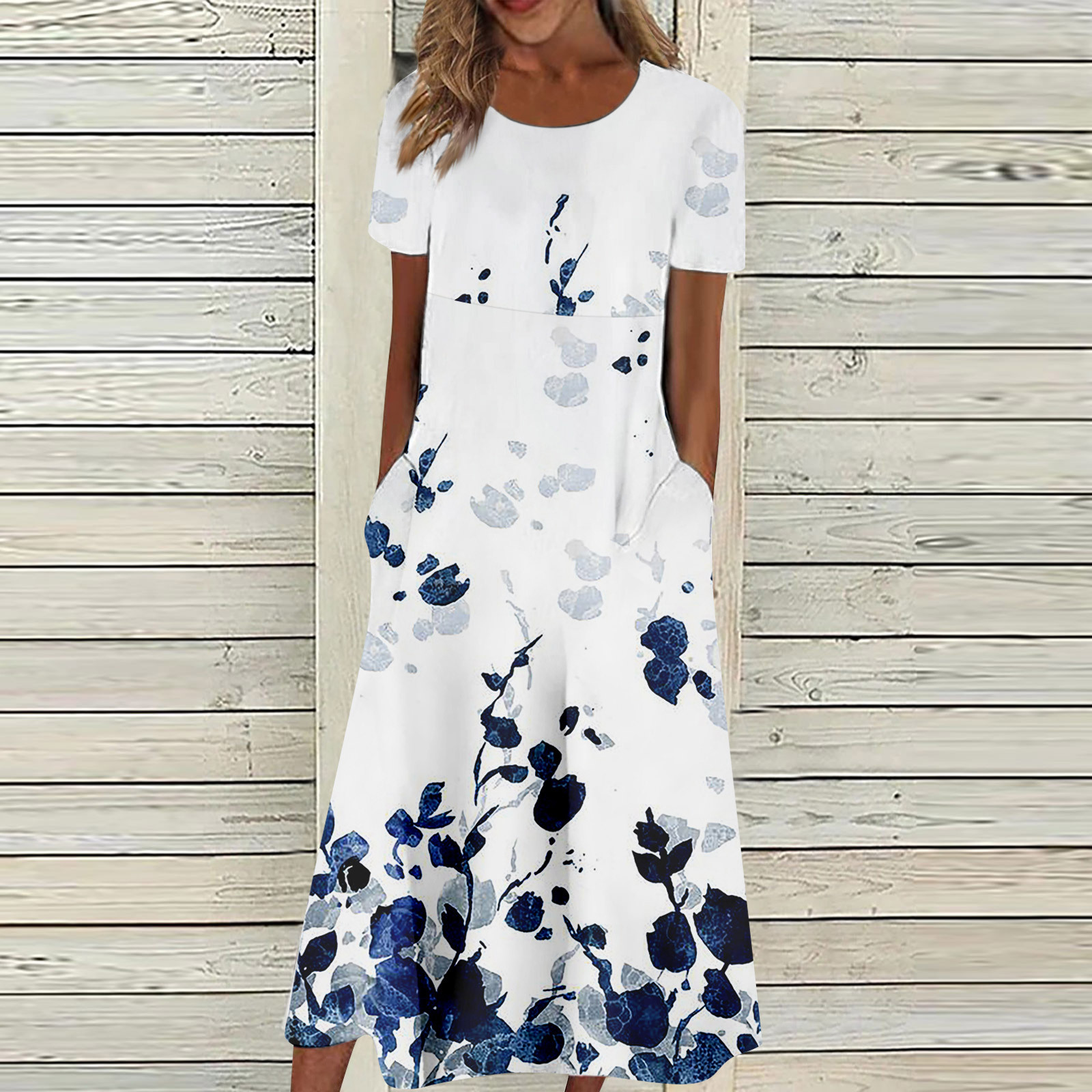 Printed Short Sleeve round Neck Dress