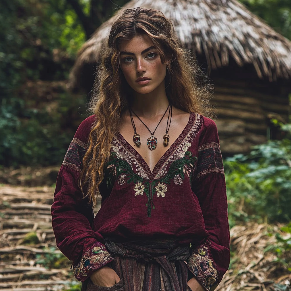 Retro Bohemian Tribal Art Embroidery Print Cotton And Linen V-neck Loose Shirt