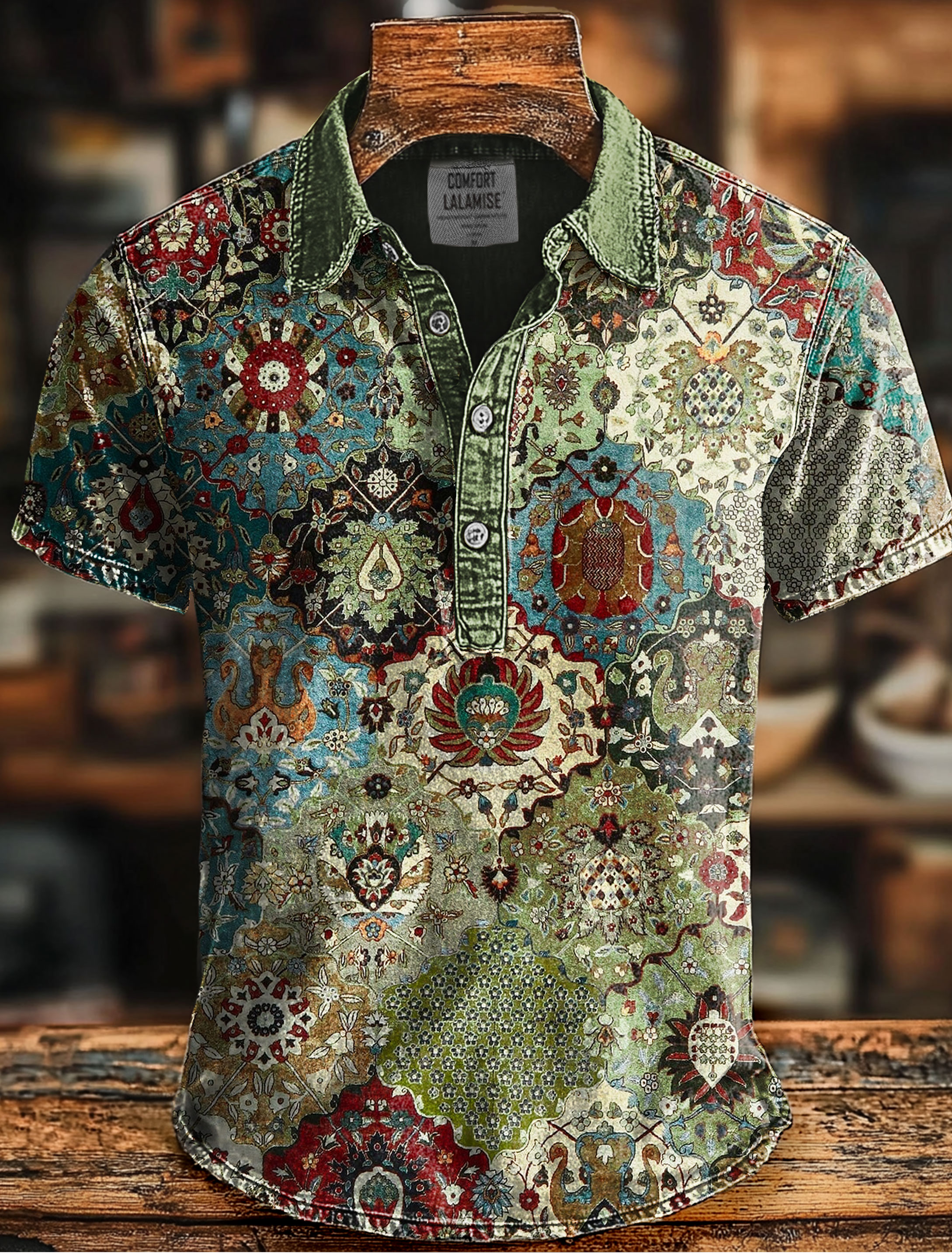 Retro Ethnic Print Casaul Short SLeeve Polo Shirt