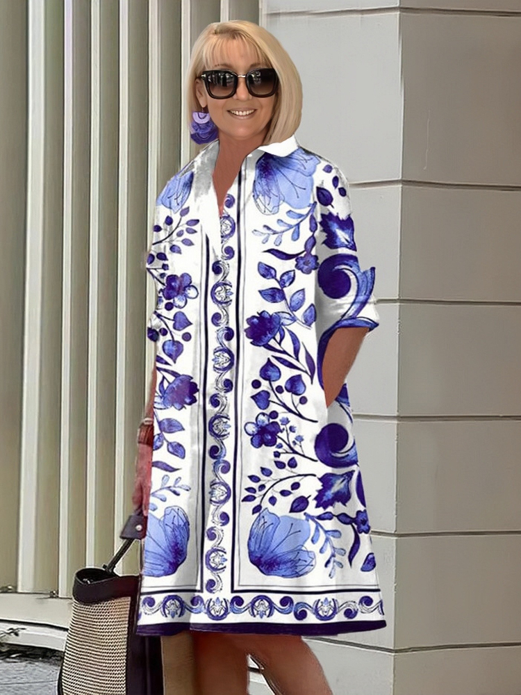 Summer Printed Shirt Midi Dress
