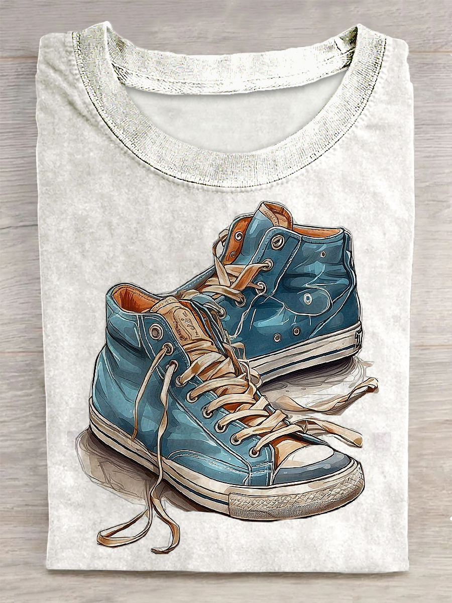 Unisex Canvas Shoe Printed Vintage Fashion Loose Short Sleeve T-Shirt
