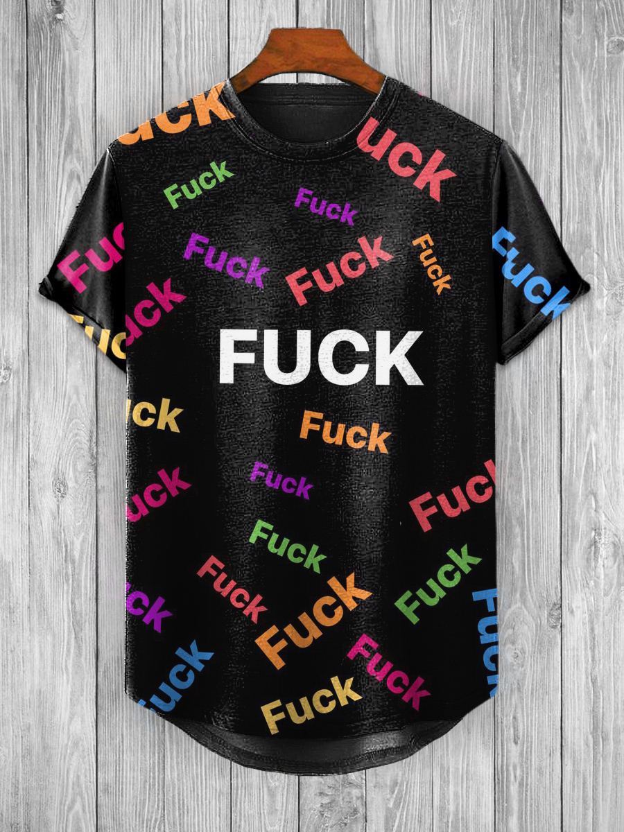 Unisex Fuck Printed Fashionable Loose Short Sleeved T-shirt With Irregular Hem
