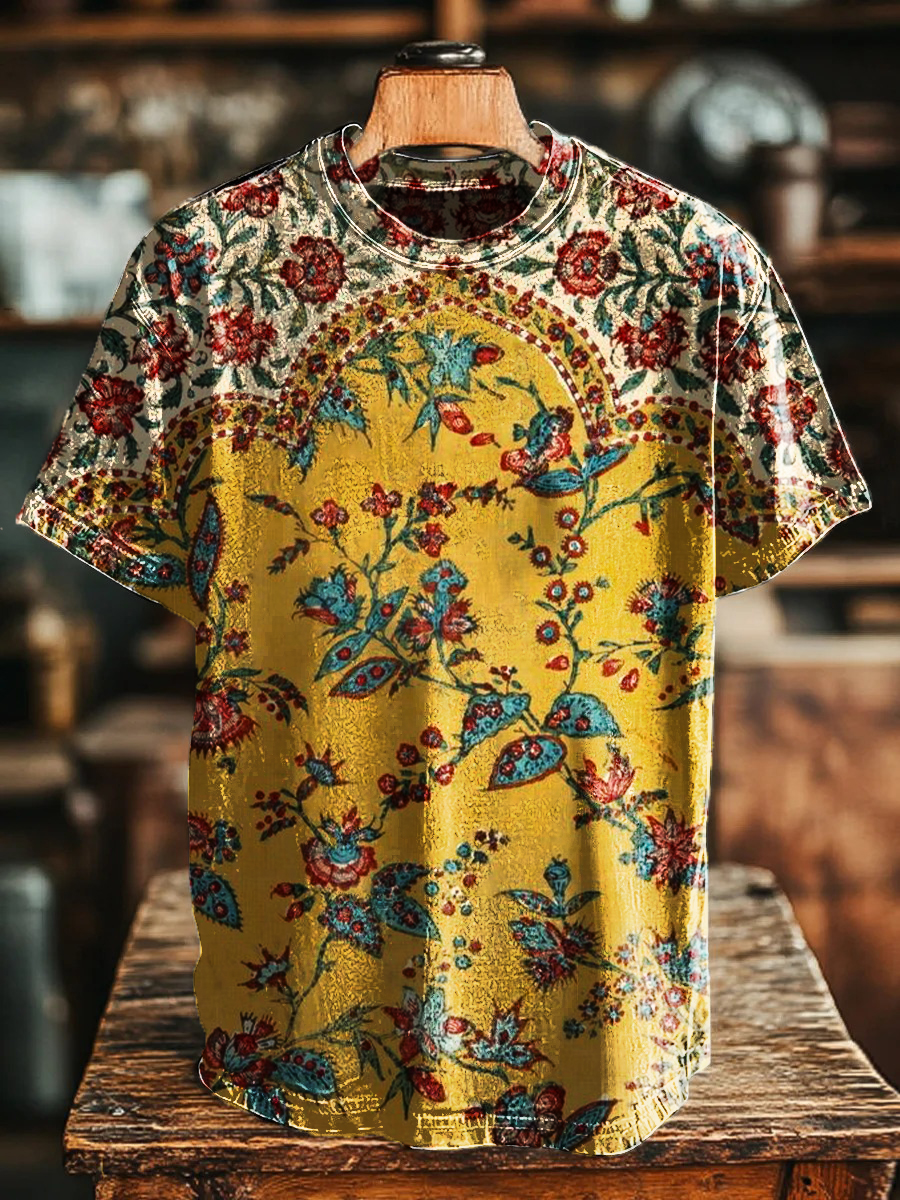 Unisex Retro Ethnic Floral Printing Casual Loose Short Sleeve T-Shirt