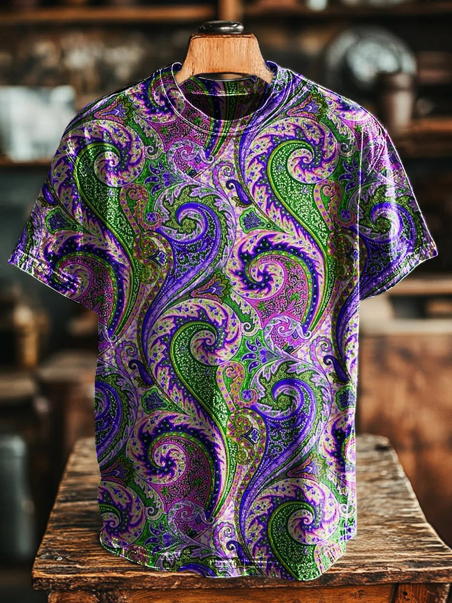 Unisex Retro Ethnic Floral Printing Casual Loose Short Sleeve T-Shirt