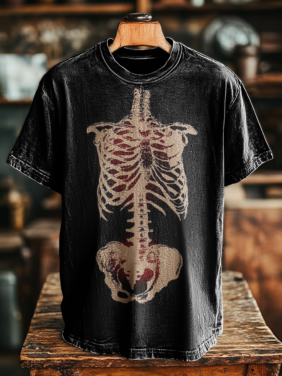 Unisex Retro Fun Skull Art Print Casual Loose T-Shirt