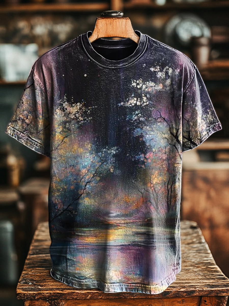 Unisex Vintage Abstract Aurora Tree Print Casual Loose T-Shirt