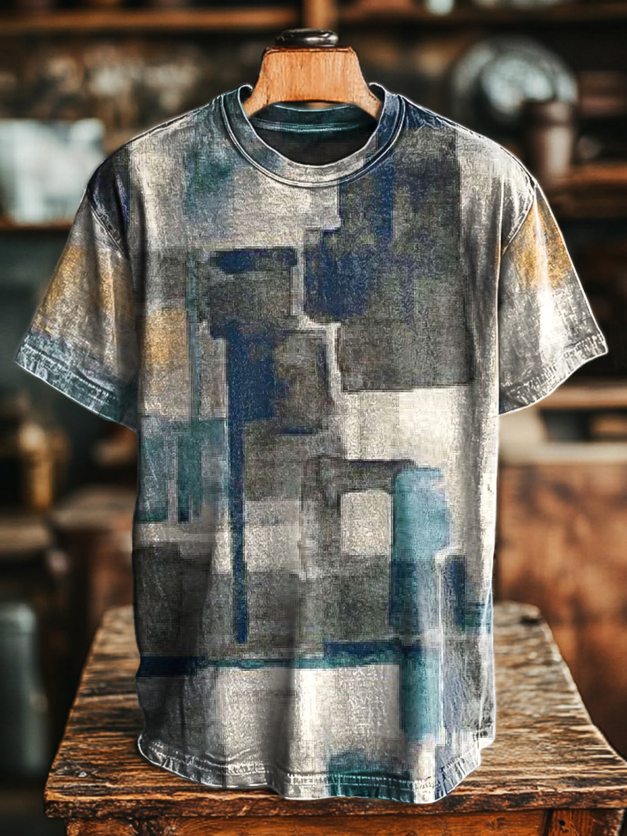Unisex Vintage Abstract Geometric Swoosh Print Casual Loose T-Shirt