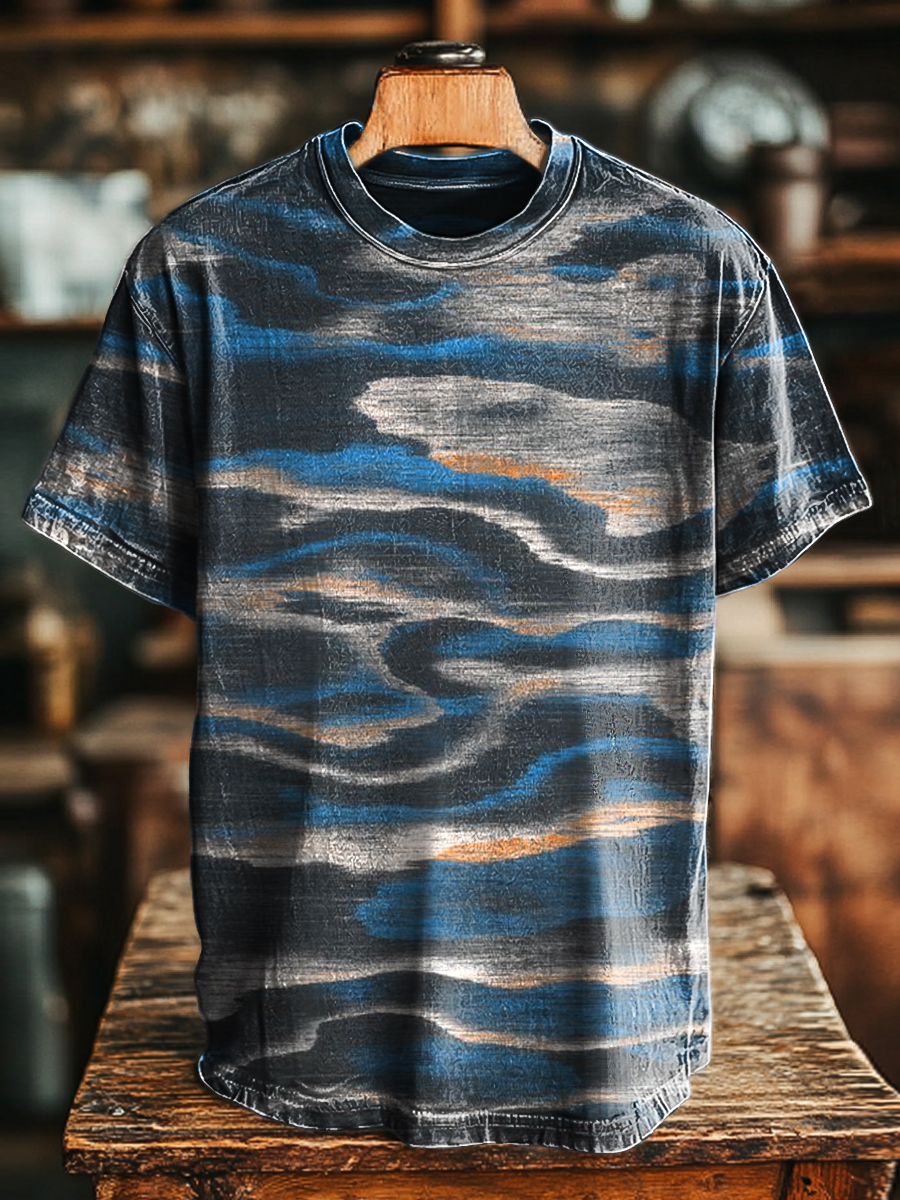 Unisex Vintage Abstract Line Print Casual Loose T-Shirt